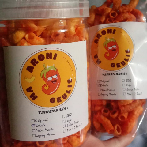 Makaroni Geulis extra daun jeruk by sinuha Varian rasa : -Balado -Original -Jagung manis -Barbeque -Pedas manis -Keju -Mix 2 varian